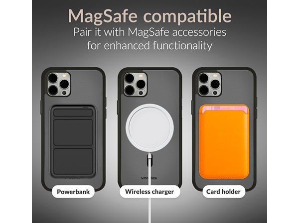 Mobilize MagSafe Compatible Hybrid Case er det perfekte valg for dig, der vil beskytte din nye iPhone. Coveret giver fremragende beskyttelse takket være dets hybride design, som kombinerer en hård bagside af polykarbonat med en fleksibel TPU-bumper.